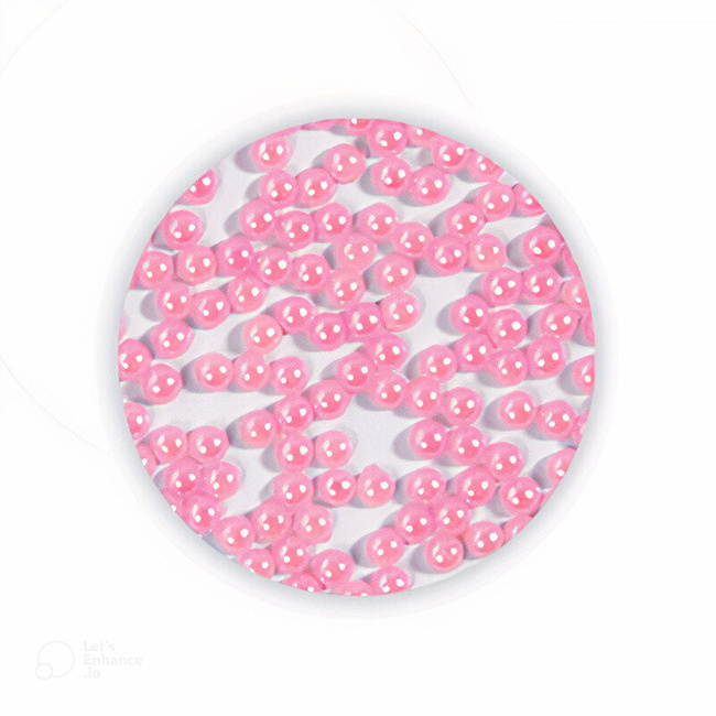 - Malutkie perełki akrylowe. Na wierzchu delikatne wypukłe, spód płaski. Szlifowane, ładnie się błyszczą.