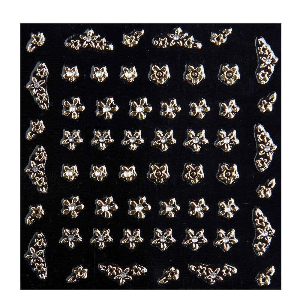 Naklejki na paznokcie złote kwiatki z cyrkonią
