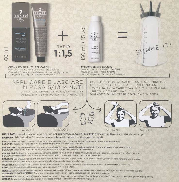 Koloryzacja jest bardzo szybka: trwa jedynie od 5 do 10 minut w zależności od rodzaju włosów. Stosowanie farb BEARD CLUB pozwala kontrolować siwiznę i stopniowo się jej pozbyć, aż do uzyskania naturalnego, młodzieńczego koloru bez efektu szokowego dla otoczenia. Farby nie zawierają amoniaku i wzbogacone są TAURYNĄ. Linia BEARD CLUB jest genialnym rozwiązaniem w skali światowej.