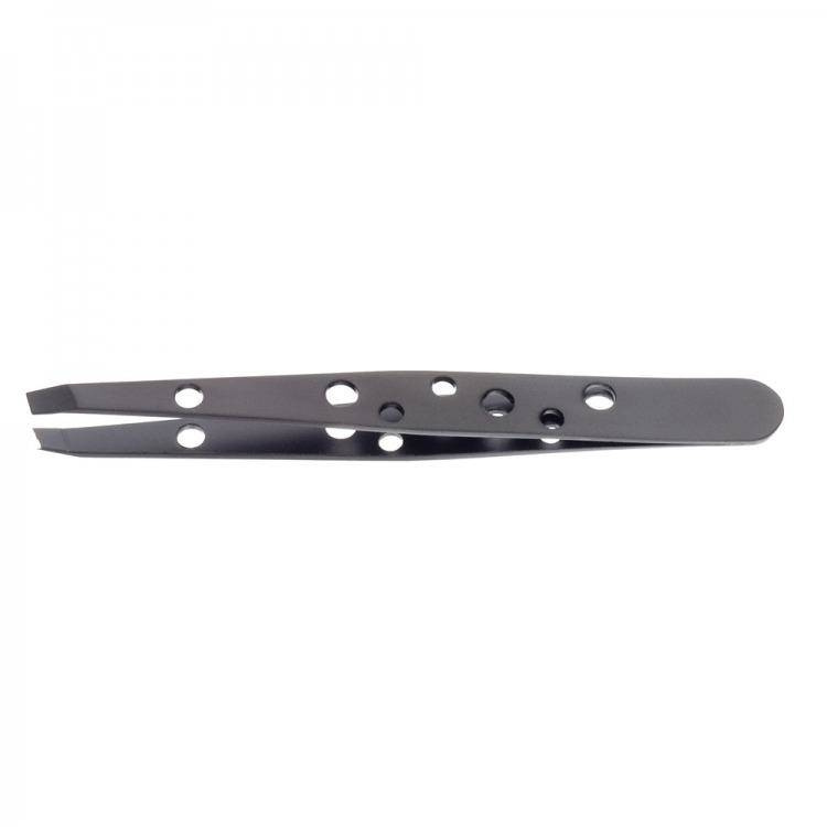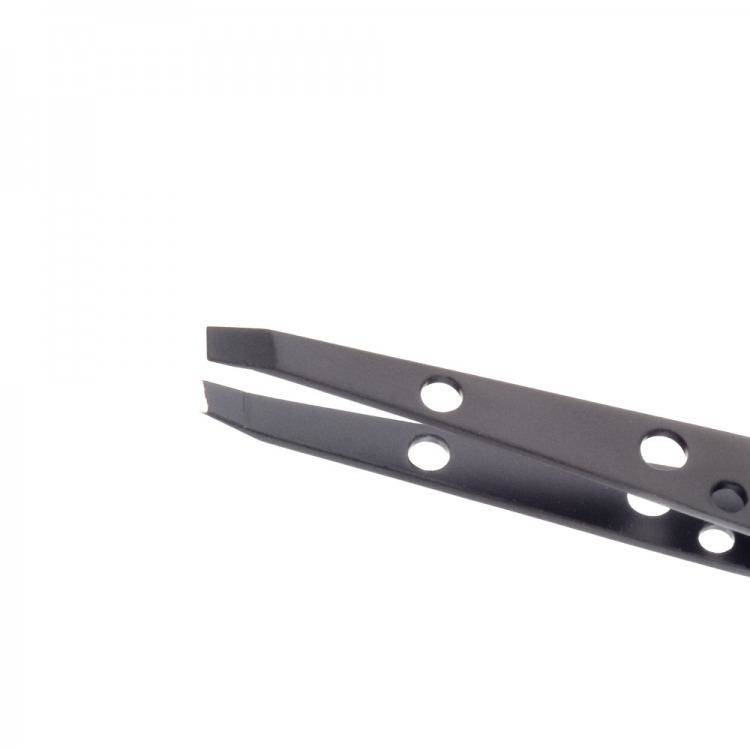 Pęseta skośna do depilacji brwi z dziurkami czarna