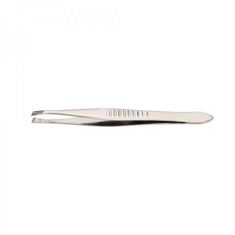 Tradycyjna pęseta skośna z utwardzanej stali nierdzewnej, chromowana. Dzięki prostej końcówce idealnie nadaje się do regulacji brwi. Końcówka pęsety jest dokładnie ścinana i szlifowana tak, aby precyzyjnie chwytały nawet najmniejsze włoski.