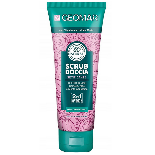 Odkryj peeling 2w1 marki GEOMAR, który skutecznie oczyszcza i złuszcza skórę, pozostawiając ją miękką, elastyczną i jedwabiście gładką. Ten peeling pod prysznic to aż 95% składników pochodzenia naturalnego, co czyni go doskonałym wyborem nawet dla delikatnej skóry. Formuła z kwiatem lotosu, kamelią, aloesem, miętą wodną oraz pierwiastkami z Morza Martwego sprawdza się doskonale przy codziennym użytkowaniu.